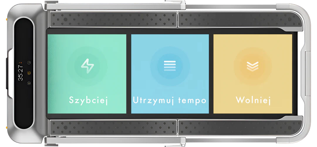 W trybie chodzenia bieżnia automatycznie dostosowuje prędkość do użytkownika.